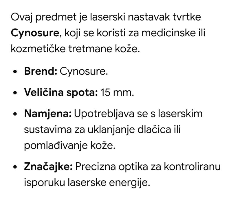 Cynosure Photogenica Cynergy pulsirajući laser s bojom 15mm, ručni dio za montažu. 100e. Zagreb