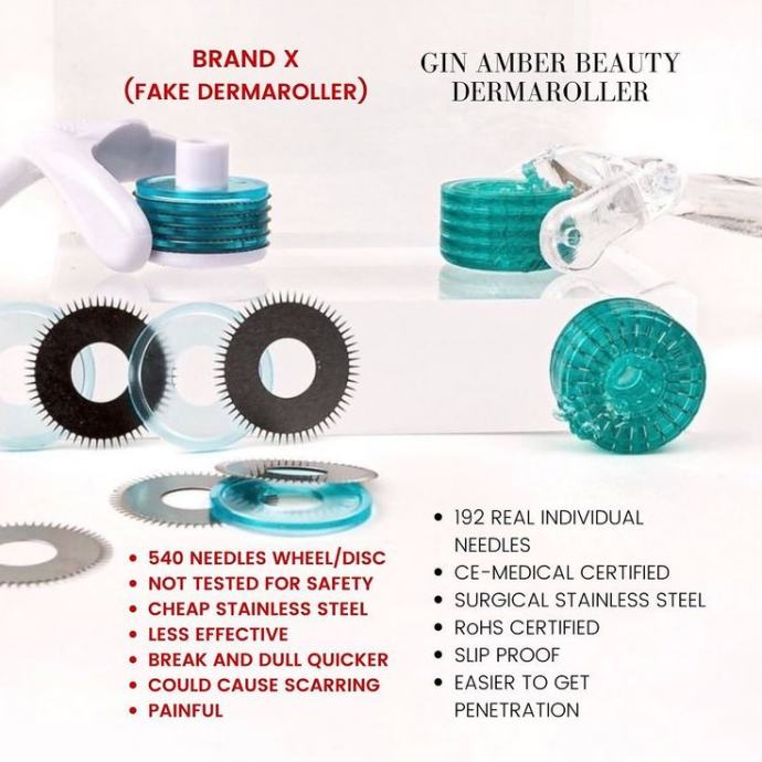 Iglice dermarolera Gin Amber Beauty izrađene su od kirurškog nehrđajućeg čelika sa 192 pojedinačne iglice.