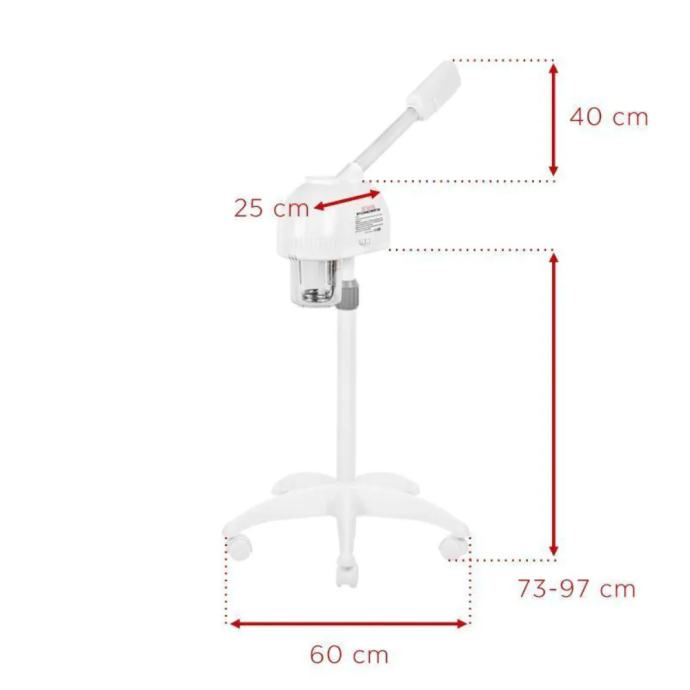 Multifunkcionalni vapozon s toplom parom i ozonom. Uređaj je postavljen na stalak s podesivom visinom. Ovaj vapozon nezamjenjiv je uređaj u svakom kozmetičkom salonu. Prednosti vapozona: dezinficira kožu, otvara pore, para prodire u pore i čisti nečistoće u obliku nakupljene masnoće i ostataka različitih kozmetičkih proizvoda, pomaže koži u oslobađanju toksina, omekšava kožu, ubrzava cirkulaciju krvi, hidratizira i osvježava kožu, poboljšava metabolizam, obnavlja prirodnu kiselost kože, značajno poboljšava rezultate masaže.