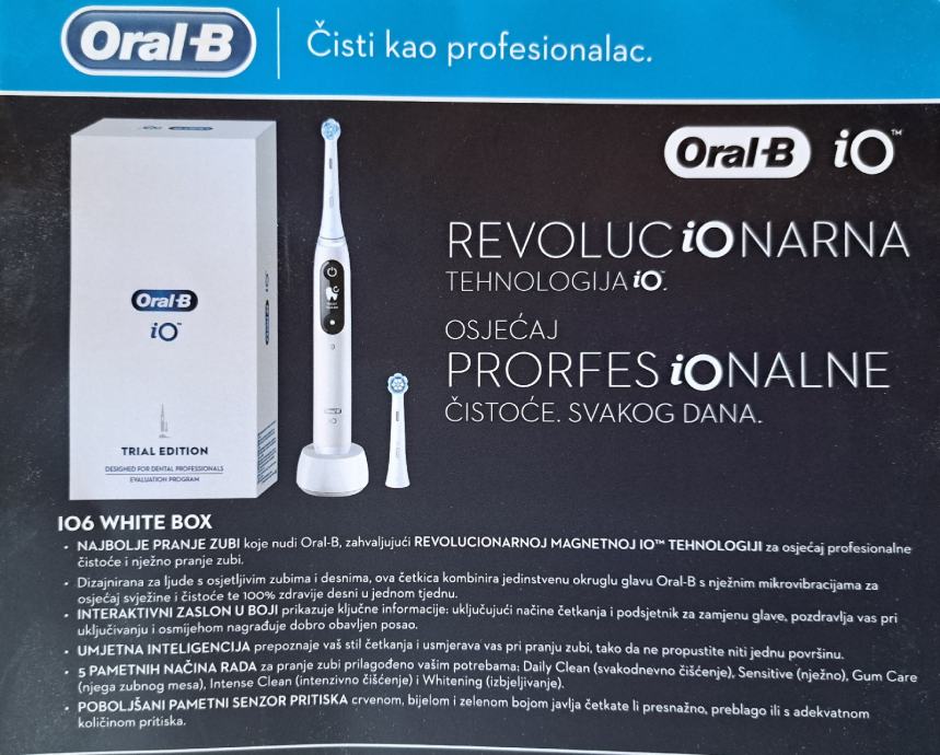 Oral B iO, series 6, električna četkica za zube s pripadajućim spremnikom. Novo, nekorišteno, samo izvađeno iz kutije. Napredna tehnologija i vrhunska kvaliteta.