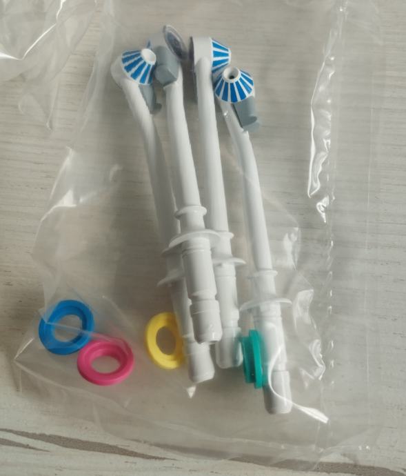 Oralni tuš "Orak B Oxyjet", nov nikad korišten, nikada vađen iz kutije. Dolazi sa 4 nastavka za ispiranje kojima se može dodjeliti boja kako bi se razlikovali. U Zagrebu moguće osobno preuzimanje