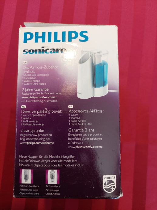 Philips Sonicare AirFloss baza s punjačem, novo, neupotrebljavano. Dva nastavka za AirFloss.