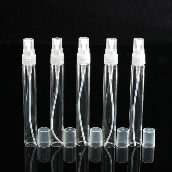 Parfem bočica (za parfeme) izrađena od stakla, okrugla, visoka, sa raspršivačem i poklopcem, zapremina 10 ml.