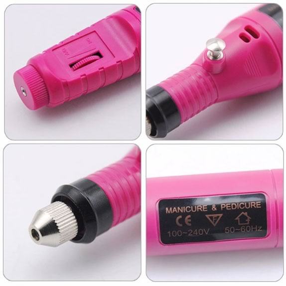 1. Ova raspica je kvalitetna, multifunkcionalna, potpuno nova ELEKTRIČNA RAŠPICA ZA MANIKURU I PEDIKURU. Ima 6 različitih nastavka koji obrađuju, poliraju i oblikuju nokte. Na bazu rašpice stavljaju se nastavci. Radi u dva smjera, ne pregrijava se i ne stvara puno buke ni vibracije. Lagana za rukovanje, prenosiva, kompaktna, pogodna za putovanja. Nalazi se na slikama 6 i 7 (roze boje)....