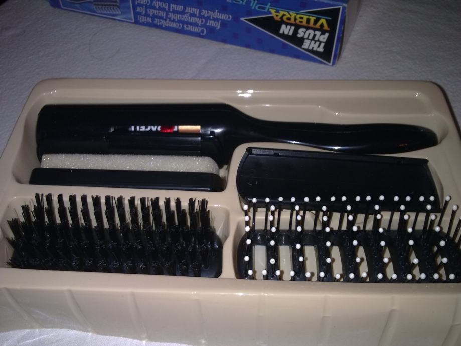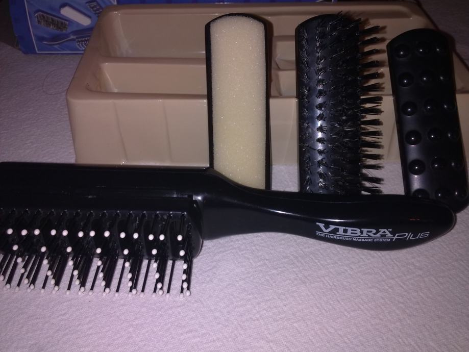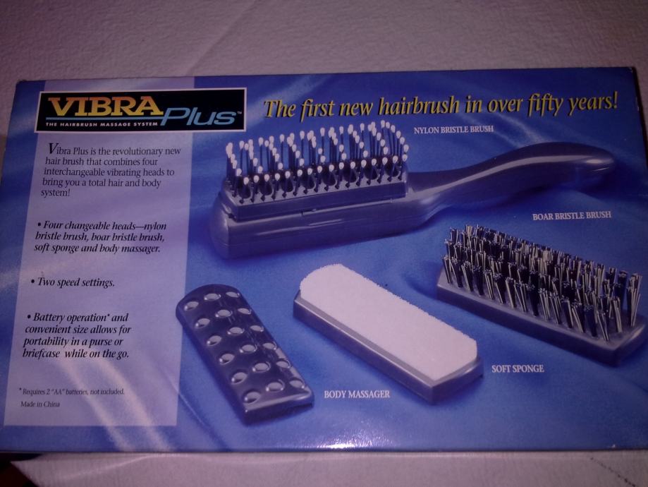 Nekorišteno, vibrirajuća četka s 4 nastavka: 2 za kosu (vlasište), 1 za masažu tijela i 1 mekanu spužicu (lice).