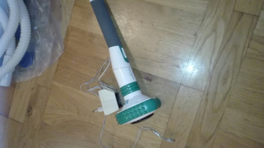 Prodajem Zepterov ručni masažer, POTPUNO ISPRAVAN i odlično očuvan. Masažer je posebno pogodan za samomasažu, a masirati se može i preko odjeće. Ručka je presvučena spužvom kako bi se masažer mogao čvrsto primiti bez klizanja, ergonomski je oblikovana, ima fleksibilni zglob pa je pogodan za samomasažu leđa. Masažer ima punjivu bateriju i dolazi s originalnim punjačem. Glava masažera ima dvije brzine masiranja (niska i visoka) i 4 različite masirajuće površine za različite vrste masaže: