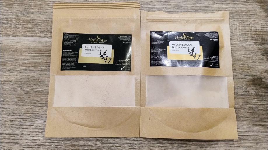 Ayurvedska mješavina biljaka za njegu i obnovu plave kose. 1 cijelo neotvoreno pakiranje, drugo napola potrošeno.