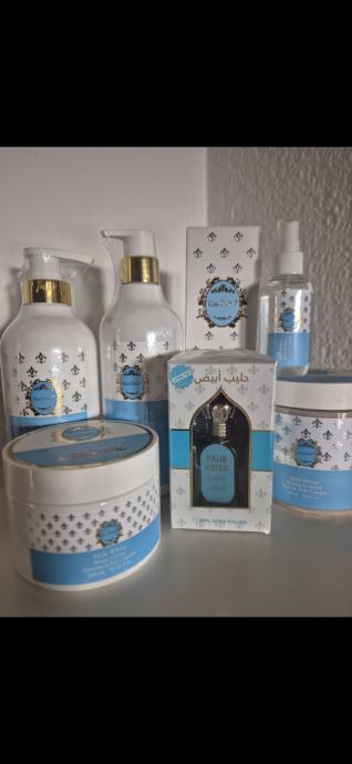 Set se sastoji od šampona, maske,losion za tijelo,pilinga,mirisnog ulja,čistača za lice i mirisnog mista za kosu.
