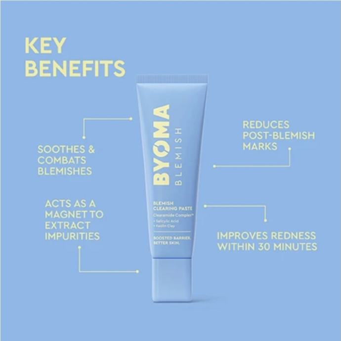 BYOMA Blemish Clearing Paste protiv prištića je brzo dielujući, koži nježan tretman namijenjen ciljnom djelovanju na nepravilnosti i smanjenju crvenila