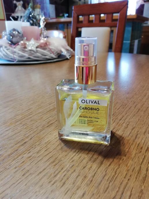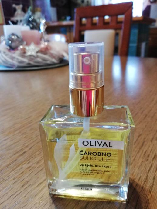 Olival čarobno suho ulje namijenjeno je njezi lica, tijela i kose. Obogaćeno je čarobnom formulacijom na bazi prirodnih ulja lješnjaka, argana, jojobe, divlje ruže i makadamije koji čine kožu mekom i svilenkastom, a vrhove kose nahranjenima i zaštićenima. U trenu se upija u kožu te je čini neodoljivo mekom i nježnom na dodir. Olival čarobno suho ulje savršen je izbor za njegu nakon sunčanja jer vraća neophodnu vlagu i ublažava štetno djelovanja UV zraka.