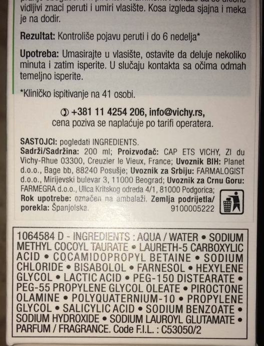 DERCOS Vichy šampon protiv prhuti za osjetljivo vlasište dermatološki
