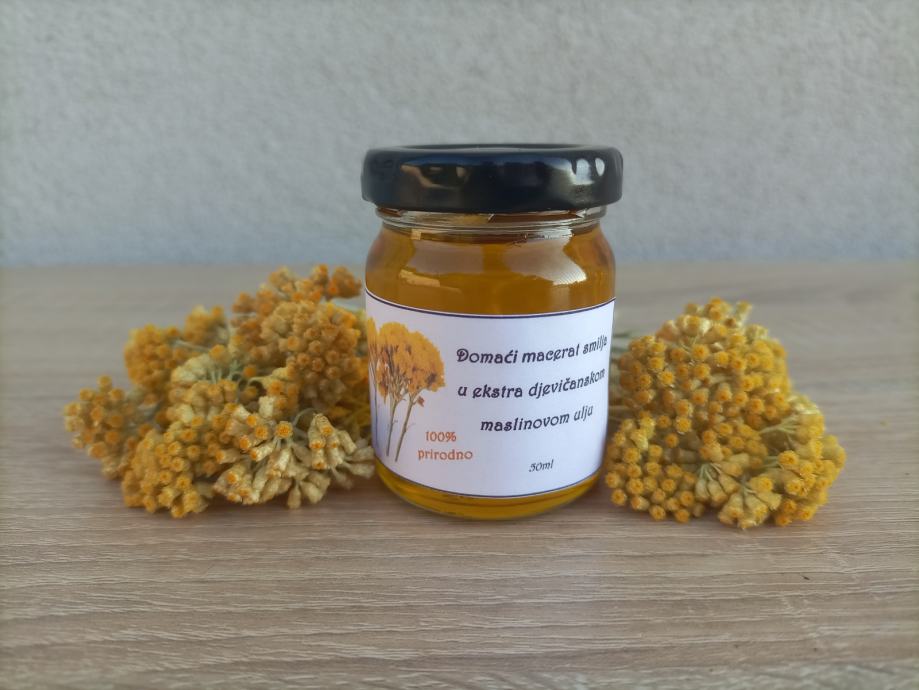 Domaći čisti macerat smilja (ulje smilja) u ekstra djevičanskom maslinovom ulju