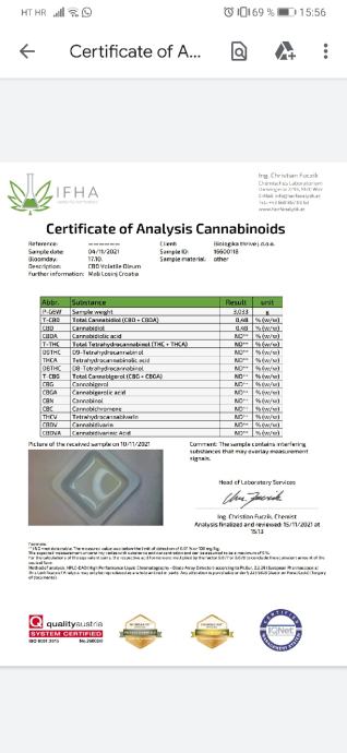 Ulje je vrhunske kvalitete prema analizama dostupnim u slikama.