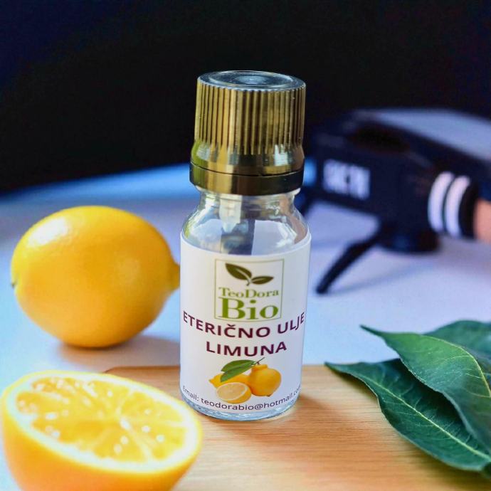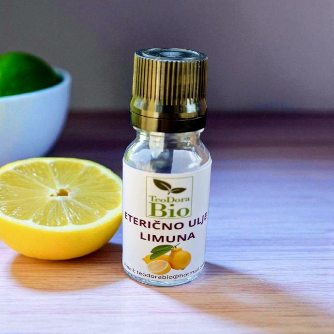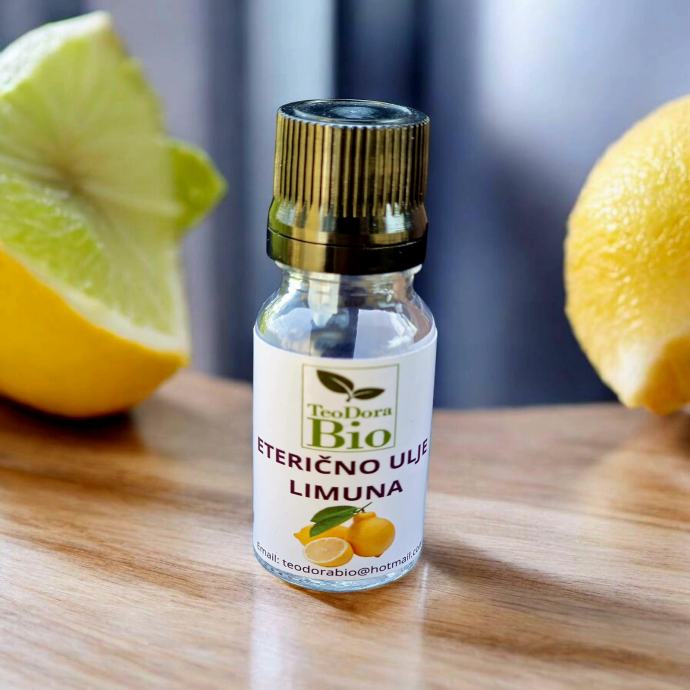 Opis:100% Eterično ulje limuna se dobija destilacijom vodenom parom iz kore ploda biljke Citrus Limonum. Od aktivnih principa ulje sadrži: (+)-Limonene, B-Pinene, Gamma-Terpinene, Geranial, a-Pinene