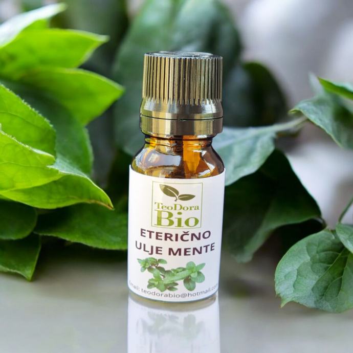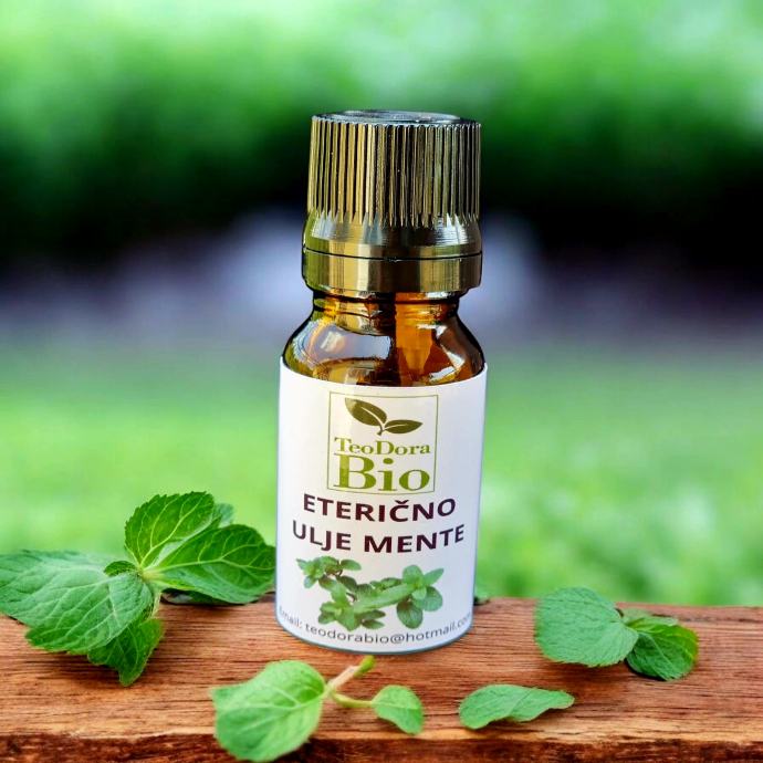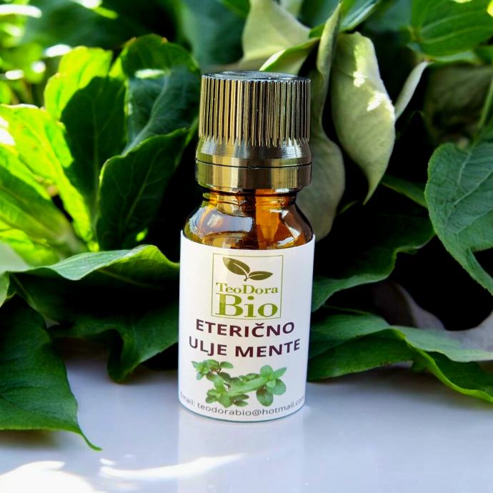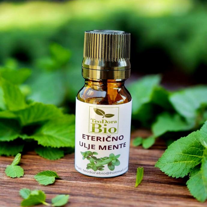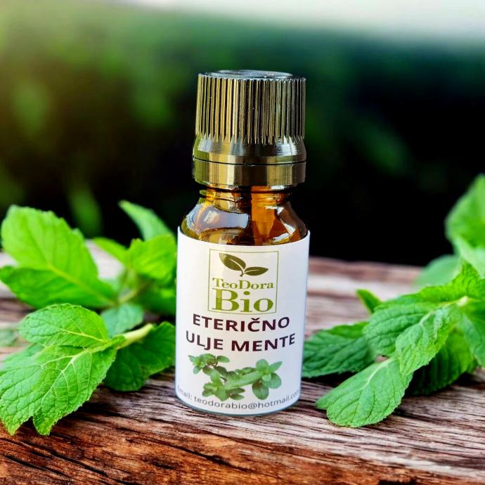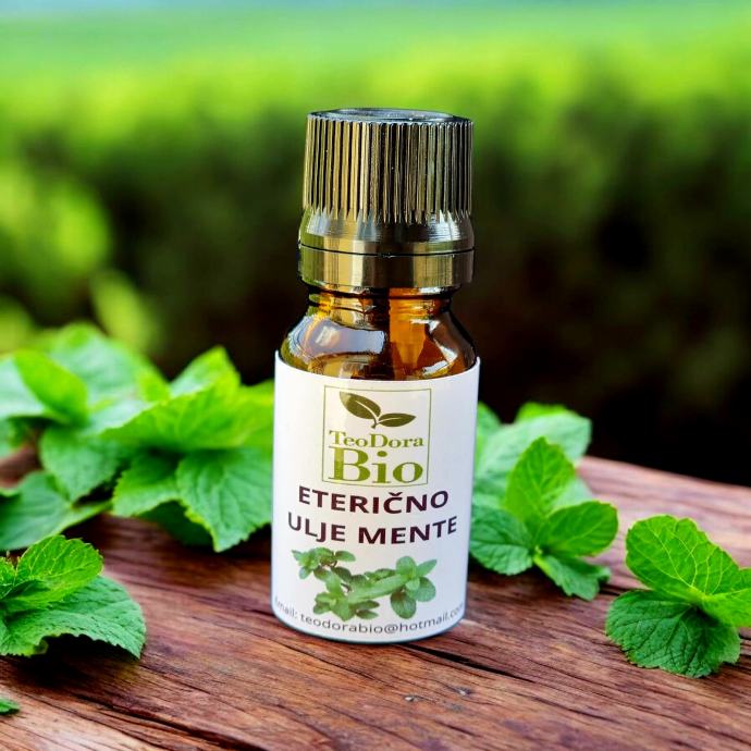 Opis: 100% čisto eterično ulje mente se dobija hidrodestilacijom vodenom parom iz listova biljke Mentha Piperita. Od aktivnih principa ulje sadrži: Menthol, Menthon, Menthyl acetat, Neomenthol, 1,8-Cineole Menthofuran