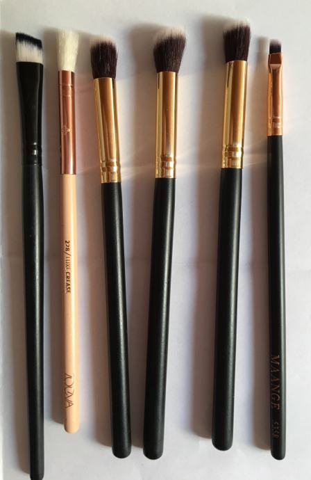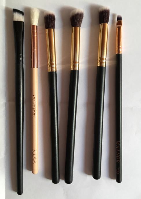 6) Maange mali sinteticki kistic (plosnat i ravan, može biti kao detailer kist za sjenilo u unutarnjen kutu oka, eyeliner od sjenila, sitne popravke oko očiju i obrva sa sjenilom ili korektorom, možda čak i za ruž) - 10 kn