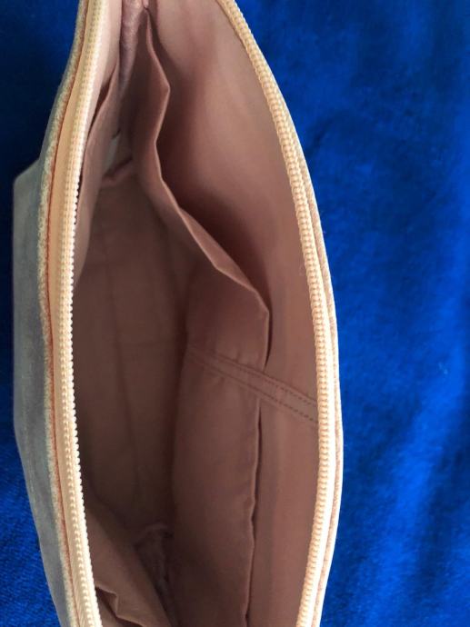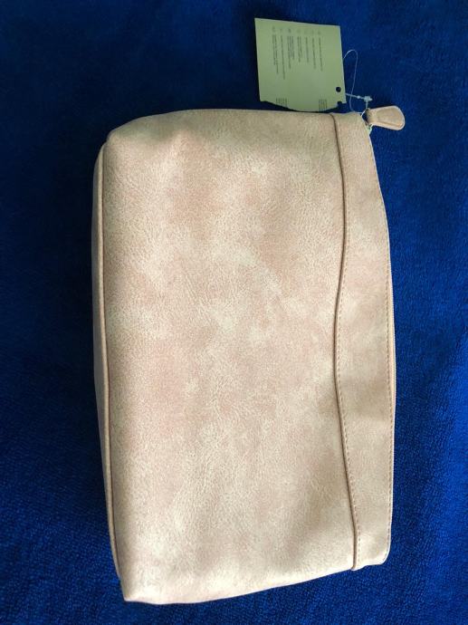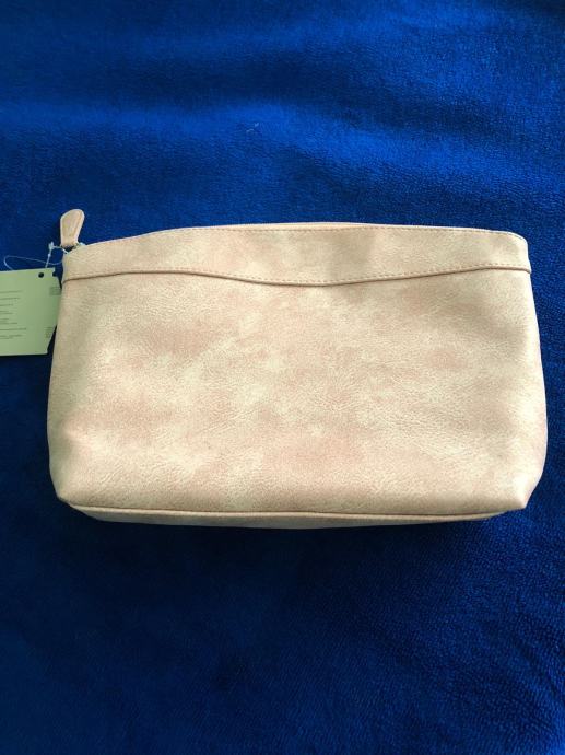 Kozmeticka torbica nova nekoristena svjetlo ruzicaste boje, poluuretan, dimenzije 31x21cm.
