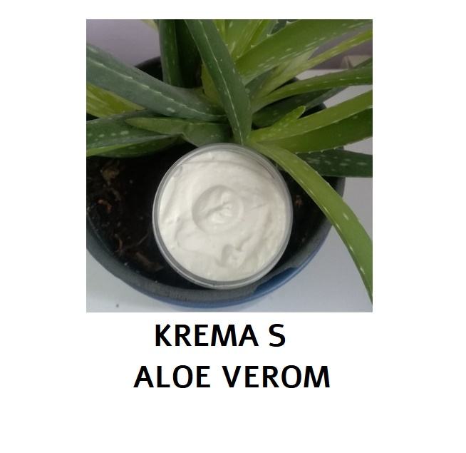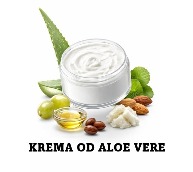 Krema aloe vera - za hidrataciju i protiv upala, napravljena od gela svježe ubranog lista aloe vere, ulja sjemenki grožđa, jojobe, badema, centele, shea - karite maslac.