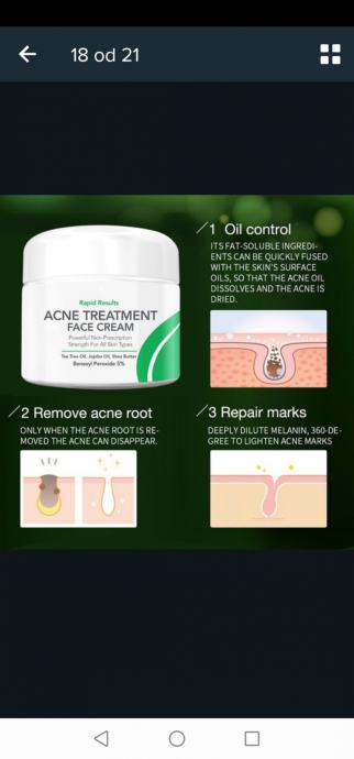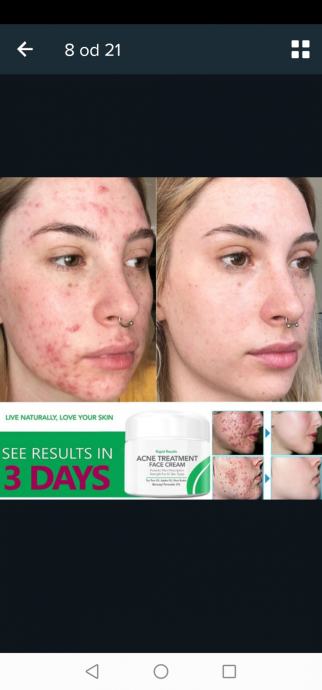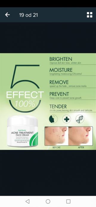 Krema protiv akni savršene djeluje več nakon nekoliko nanošenja.Za detaljno djelovanje i potpuno čišćenje lica potrebno je barem 1 mjesec nanositi kremu.