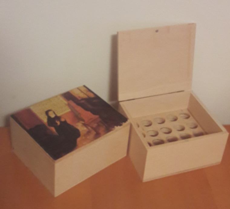 Kutija za eterična ulja, za 20 bočica. Sa ili bez motiva na poklopcu. Cijena 100 kn.