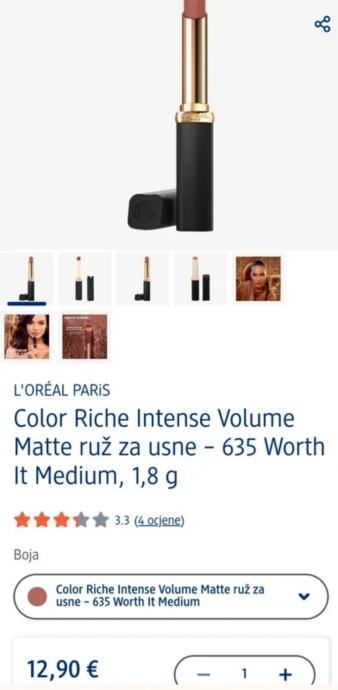 Potpuno novi ruž za usne Color Riche Intense Matte (nijansa 635) koji je još jedno remek-djelo iz L'Oreal-a. Omogućuje praktičnu uporabu čak i u pokretu. Intenzivna pigmentacija jamči bogatu, duboku boju, dok hranjivi sastojci pružaju nježnu njegu za osjetljivu kožu, održavajući njenu glatkoću i mekoću.