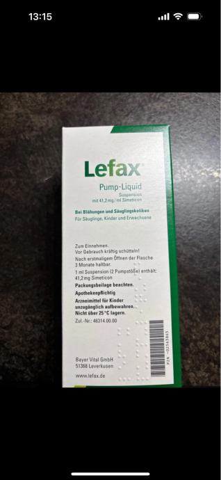 Lefax kapi za grčeve. Proizvođač Bayer, 100 ml. Orginal zapakirano