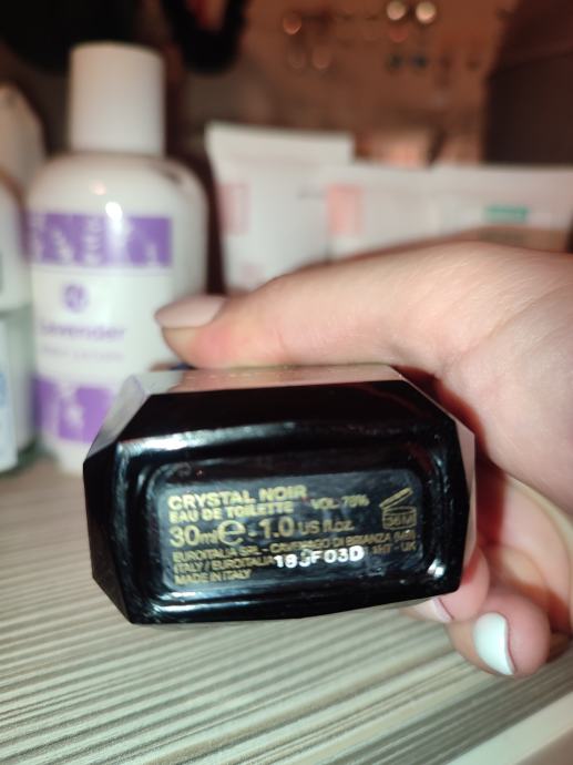 Versace crystal noir 30ml,potrošeno možda 5. Stoji već godinu dana, nekako mi se čini da je zato slabijeg intenziteta..