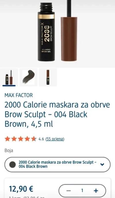 1) Max Factor 2000 calorie maskara za obrve Brown sculpt, 004 black Brown,