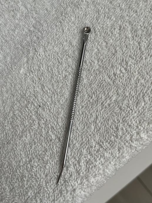 Jedna strana ima malu omčicu ili žlicu s rupicom, a druga šiljasti vrh. Jednostavno i lako za održavanje, samo alkoholom i uvijek dezinficirano. Nikada korišteno