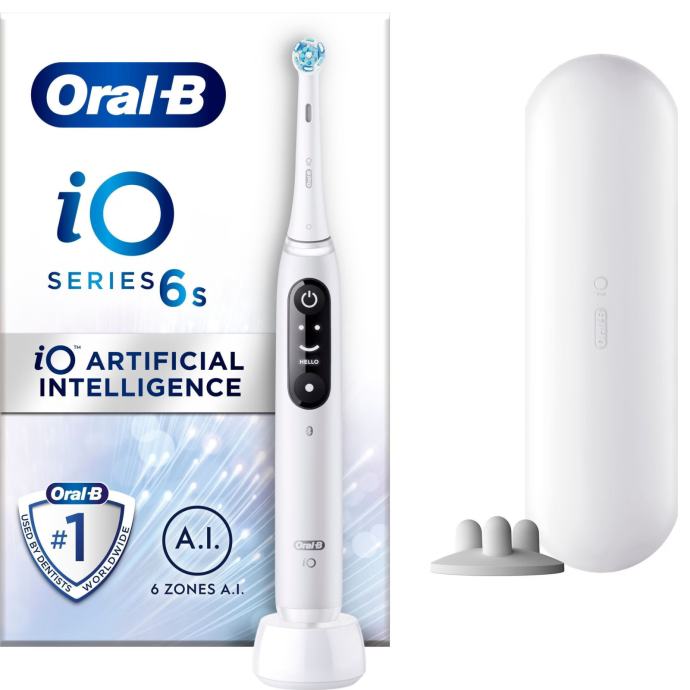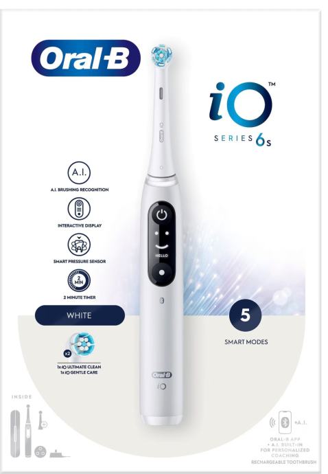 Oral-B iO 6s električna četkica za zube 427407 pruža vašim zubima profesionalnu njegu kakvu zaslužuju. Opremljena inovativnom iO tehnologijom, intuitivnim zaslonom, 5 načina četkice i više, ova četkica za zube savršena je za vas.