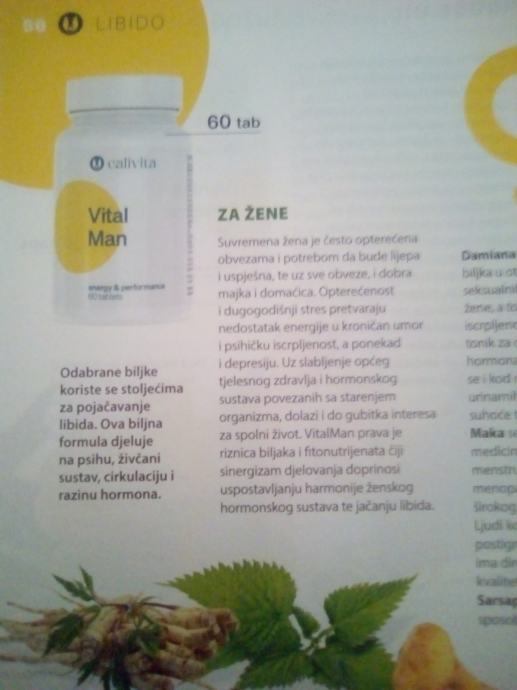 Prodajem Vital man ,60tab.za pojačanje libida.Ova biljna formula djeluje na psihu,zivcani sustav, cirkulaciju i razinu hormona.
