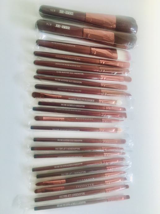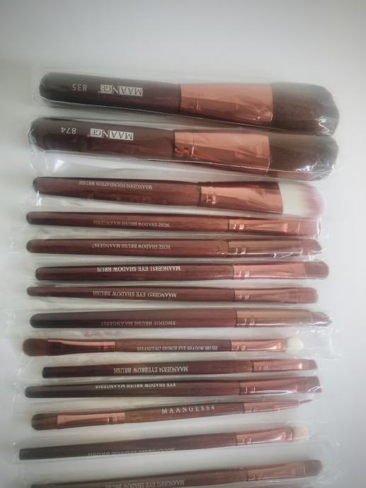 Nudim potpuno nov set profesionalnih make-up kistova. Sve je uredno zapakirano u original foliji, a na svakom kistiću piše za što se točno koristi. Imaju drvenu dršku, novi su i kvalitetni. Set se sastoji od 22 profesionalna kista - odlična ponuda!
