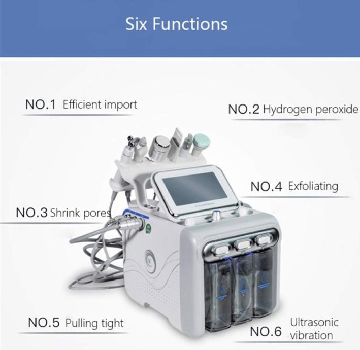 TRETMAN ZA SVE TIPOVE KOŽE - 6 u 1 višenamjenski stroj s vodikom i kisikom snažan je i opremljen sa 6 sondi za njegu ljepote. Može liječiti akne, seboroičnu alopeciju, folikulitis, čisti kožne alergene, izbjeljuje kožu, poboljšava koži sjaj, dubinski čisti kožu, koži daje vlažnost, njeguje, sužavanje pora.