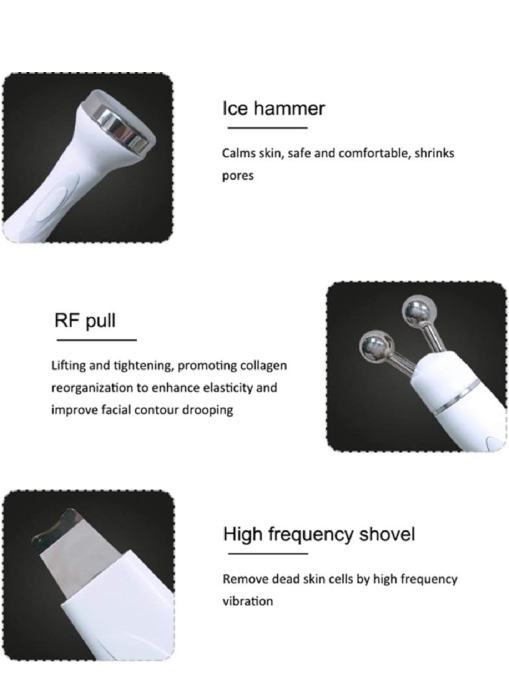 2. Ultrazvučna ručka - ultrazvučna vibracija 1.000.000-3.000.000 puta u minuti za otvaranje pora, suština brze infiltracije na temelju kože, stopa upijanja kože više od 90%