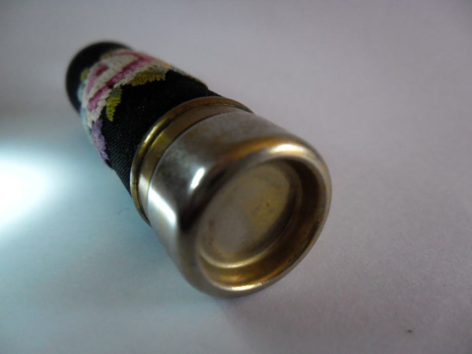 Nepoznat mi je datum proizvodnje i proizvođač. Visina 6 cm, promjer gornjeg i donjeg dijela 1.5 cm.
