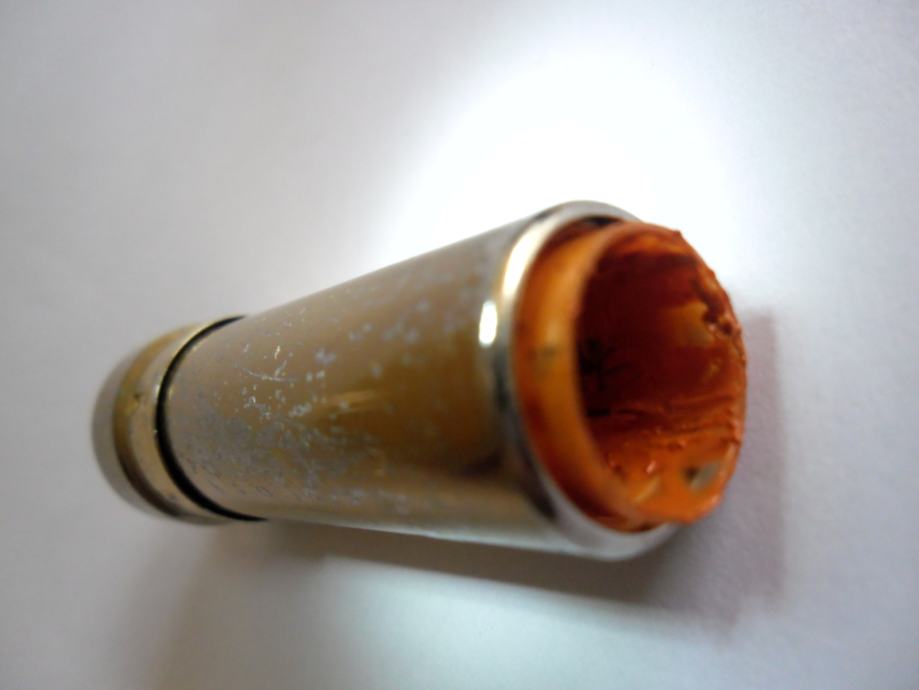 Star(insk)i ruž za usne, potrošen, s ostacima sadržaja. Karakterističan miris ruža je očuvan.