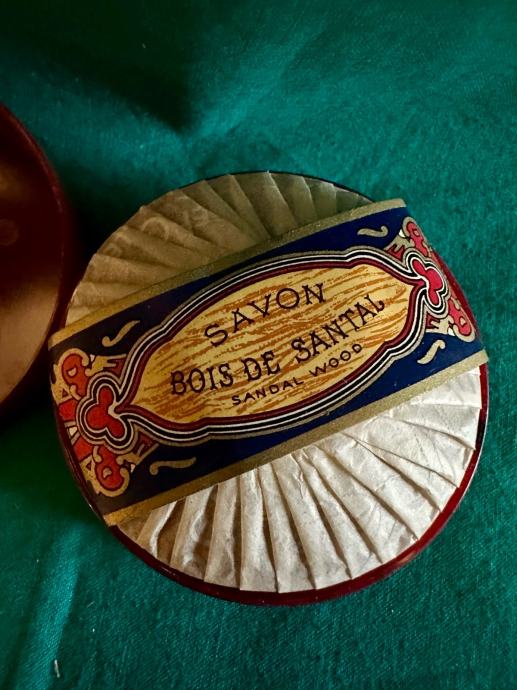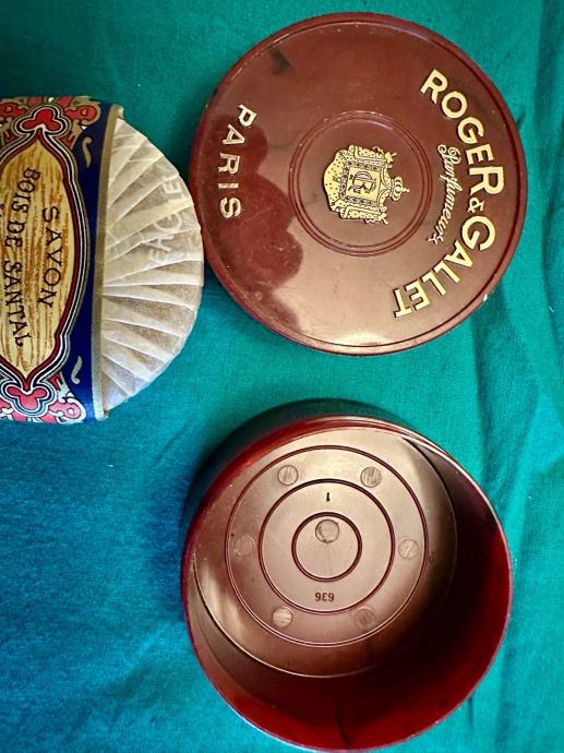Prodajem originalni sapun Roger & Gallet iz 1960-ih godina, potpuno nov i nekorišten. Radi se o sapunu s mirisom sandalovine (Bois de Santal), koji dolazi u karakterističnoj okrugloj crvenoj kutiji s pozlatom i oznakom "Parfumeurs, Paris". Sapun je i dalje u originalnom pakiranju s ukrasnim papirom, netaknut i sačuvan kao nov.