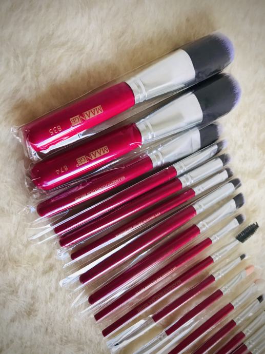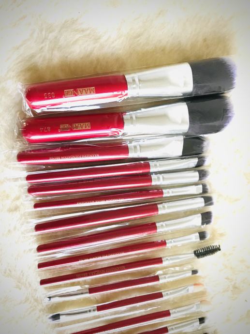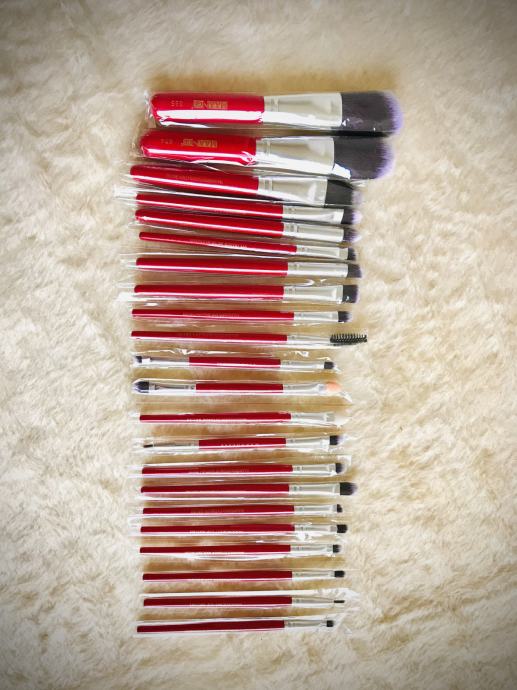 POTPUNO NOV i nikad korišten set 22 kvalitetna kista za nanošenje šminke na cijelo lice (za podlogu, puder, rumenilo, obrve, trepavice, usne, konturiranje...) sve što Vam je potrebno za profesionalno šminkanje i da zablistate :) Kvalitetne crvene drvene drške i meke, nježne dlačice za savršeno nanošenje. Idealno kao poklon.