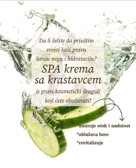 Nanosi se dva puta u toku dana, najbolje ujutro i uveče a po potrebi i više puta u toku dana(za osobe sa suhom i ispucalom kožom). Odgovara svim tipovima kože. Posebno se preporučuje osobama sa suhim kožom, koja je inače veoma nezgodna ze njegu, lako se peruta i sklona je nastanku bora. Korištenjem SPA kreme,koža dobija potrebnu količinu vlage, vraća joj se prirodna vlažnost i sprečava dalji gubitak vlažnosti. Veoma dobro djeluje na iritiranu i masnu kožu praćenu bubuljicama i miteserima, jer krastavac djeluje kao čistač kože.
