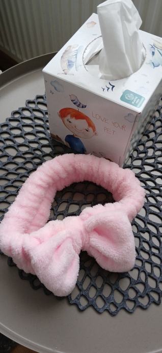 Prodajem novu traku za šminkanje u rozoj boji. Izrađena je od mekanog, pliš materijala s mašnom na vrhu. Drži kosu podalje od lica tijekom nanošenja make-upa, pranja lica ili njege kože.Mogućnost slanja,kontakt 0912531262