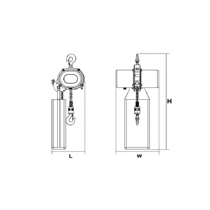 Duke električna lančana dizalica posebno je dizajnirana za različite primjene u tvornicama, skladištima, građevinarstvu, vodovodu i poljoprivrednoj industriji. Sustav motora: - primjenjuje se s visokoučinkovitim indukcijskim motorom industrijske klase - emajlirane žice otporne na toplinu do 180 stupnjeva Celzija, posebno dizajnirane za teške radoveKočioni sustav: - primjenjuje se s elektromagnetskom disk kočnicom s visokim koeficijentom trenja i nije potrebno podešavanje, što osigurava gladak i pouzdan radElektrični upravljački sustav: - opremljen 24V niskonaponskom kontrolom (elektromagnetizam) iz sigurnosnih razlogaSigurnosni sustav: - gornji i donji graničnici služe za osiguranje tijela dizalice i predmeta tereta - relej obrnute faze koji štiti dizalicu od neispravnog ožičenja. - električni uređaj za preopterećenje pruža zaštitu od preopterećenja isključivanjem struje odmah nakon preopterećenja.Lanac opterećenja: - izravno se isporučuje iz renomiranog FEC Japana, koji je izrađen od legiranog čelika u stupnju 80 i četverostrukom sigurnosnom faktoruSustav prijenosa: - dizajn planetarnog zupčanika jamči snažnu nosivost i trajnu uporabuGornja donja jedinica kuke: - izrađen od legiranog čelika formiranjem vrućeg kovanja u četverostrukom sigurnosnom faktoru - kuglični ležaj je postavljen u donju kuku protiv rotacije od 360 stupnjeva