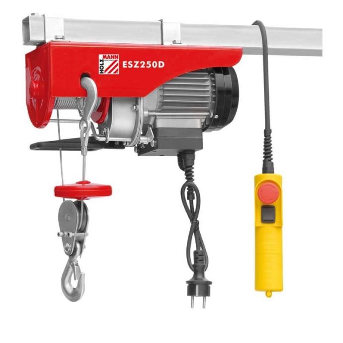 Električna dizalica 250kg ESZ250D 230V Holzmann Maschinen je odlična za dizanje i premještanje tereta. Električna dizalica 250kg ESZ250D 230V Holzmann Maschinen ima dugi operacijski kabel. Električna dizalica 250kg ESZ250D 230V Holzmann Maschinen ima lijevani aluminijski motor i kučište mjenjača.