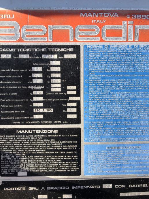 Prodajemo građevinski kran talijanske marke Benedini