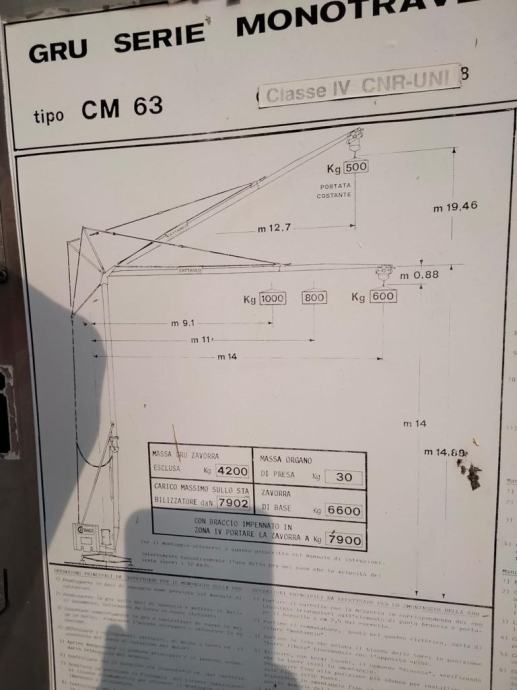 Prodajemo automontažni građevinski kran - dizalica CATTANEO model CM 63