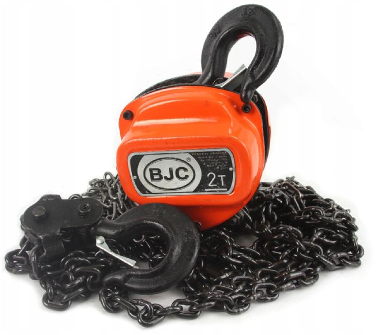 BJC lančano vitlo ima ručni pogon i zupčanik koji vam omogućuje podizanje težine do 2000 kg. Lanac izrađen od visokokvalitetnog čelika. Ćelije se spajaju metodom otporno-iskrinog zavarivanja, što jamči odgovarajuću kvalitetu i trajnost ćelije. Vitlo je opremljeno sigurnim kukama s blokadom koja sprječava otpuštanje tereta.