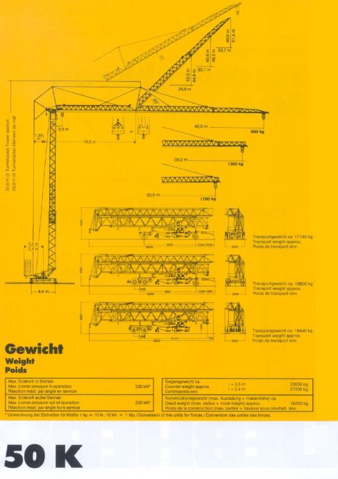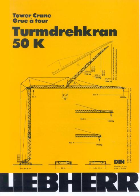 Građevinski kran Liebherr 50K, 40m radijus, nosivost 4500/1000 kg