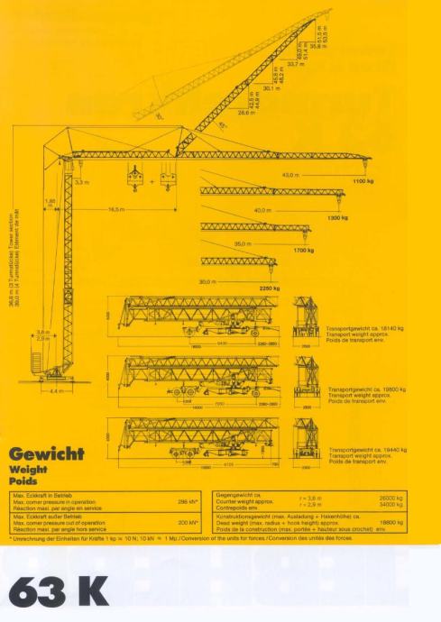 Liebherr 63K - građevinska dizalica / kran ruka 43m / 1100kg