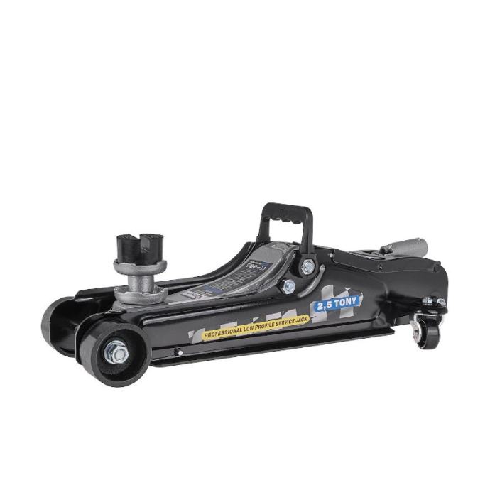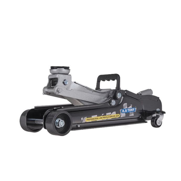 zbog minimalne visine od 80 mm lako ulazi pod niže automobilestabilna konstrukcija i nosivost od 2,5 toneintegrirana ručka omogućuje jednostavno nošenje čvrsti kotači i dva okretna kotačića olakšavaju precizno manevriranje u skučenim garažnim prostorimahidraulički sustav s ugrađenim sigurnosnim ventilom pruža kontrolirano dizanjegumena podloga štiti pragove i podnice vozila od oštećenjaTehnički podaci:nosivost: 2,5 tminimalna visina: 80 mmmaksimalna visina: 360 mmtežina: cca 12,5 kghidraulička pumpa sa sigurnosnim ventilomgumena podloga za zaštitu vozila2 fiksna kotača + 2 okretna kotačićaintegrirana ručka za nošenje❓ FAQ – Najčešća pitanja i odgovori1. Je li dizalica pogodna za vozila s niskim pragom? Da. Minimalna visina od 80 mm omogućuje korištenje na niskim automobilima, uključujući sportske modele i vozila s aftermarket ovjesom.2. Može li dizalica podići SUV vozilo? Može, ako ukupna težina vozila ne prelazi njezinu nosivost od 2,5 t i ako je točka podizanja unutar deklariranog radnog hoda.3. Ima li zaštitu od preopterećenja? Ima, ugrađeni sigurnosni ventil sprječava preopterećenje hidrauličkog sustava.4. Dolazi li u kompletu gumena podloga? Da, uključena je gumena podloga koja štiti vozilo i povećava stabilnost u kontaktnoj točki.5. Je li prikladna za svakodnevnu upotrebu u radionici?Da, konstrukcija je robusna, hod stabilan, a mobilnost odlična, što je čini pogodnom za česte i brze radove.]]>