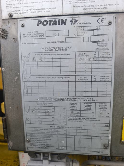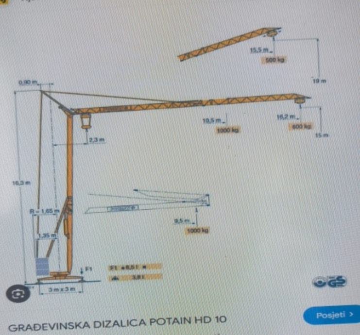 Građevinski kran POTAIN HD 10, sa daljinskim i kablovskim upravljačem. U rabljenom stanju, tehnički pregled urađen.