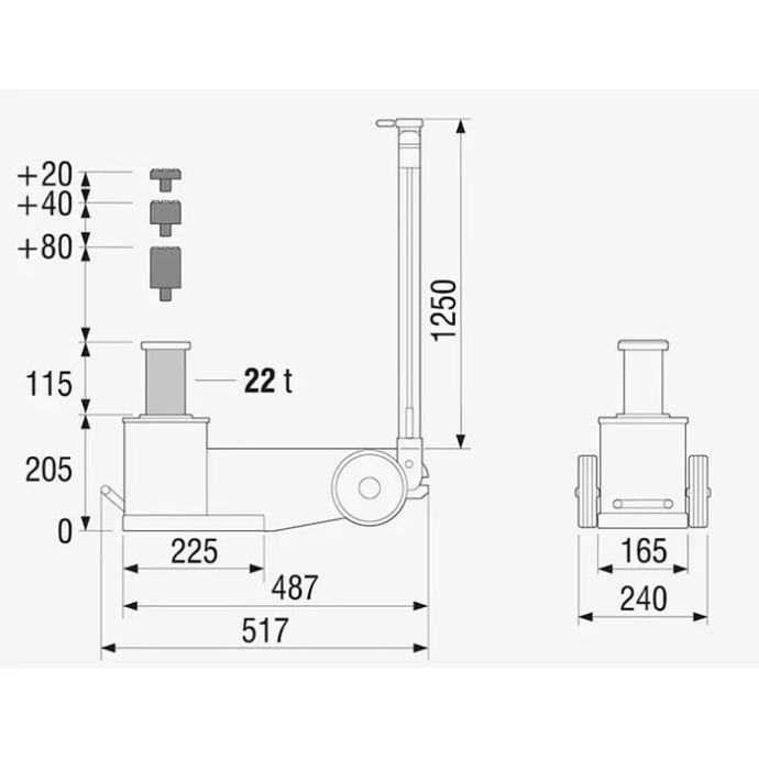 TDL zračno hidraulična dizalica 22t AJ-22T1F-TDL